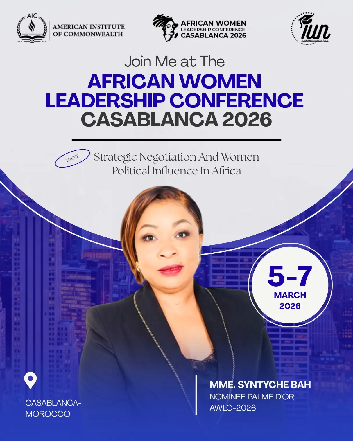 The African Women Leadership Conference (AWLC 2026) is a high-level pan-African forum dedicated to strengthening women’s strategic influence in political, diplomatic, and institutional decision-making across Africa. Convened in Casablanca ahead of International Women’s Day, AWLC 2026 will gather: